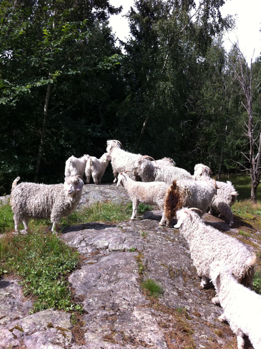 Herregud!!!! Det verkar ju som om jag var ledig..... med tanke på tystnaden här. Nu är så inte fallet. Augusti månad är får och angoragetmånaden framför allt, till och med osten får stå tillbaka lite. Alla lammen och killingarna inspekteras.Även tackorna får en extra kontroll så att juvret är fint och att tänderna sitter fast. Ull sorteras och tvättas och jag NJUTER varenda sekund. Detta är livet, här och nu:-)) Sen kan det hända sig att man blir lite trött när samma tacka VARJE DAG är tvungen att locka med sig lamm ut genom stängslet för att ta sig in i föräldrarnas trädgård och